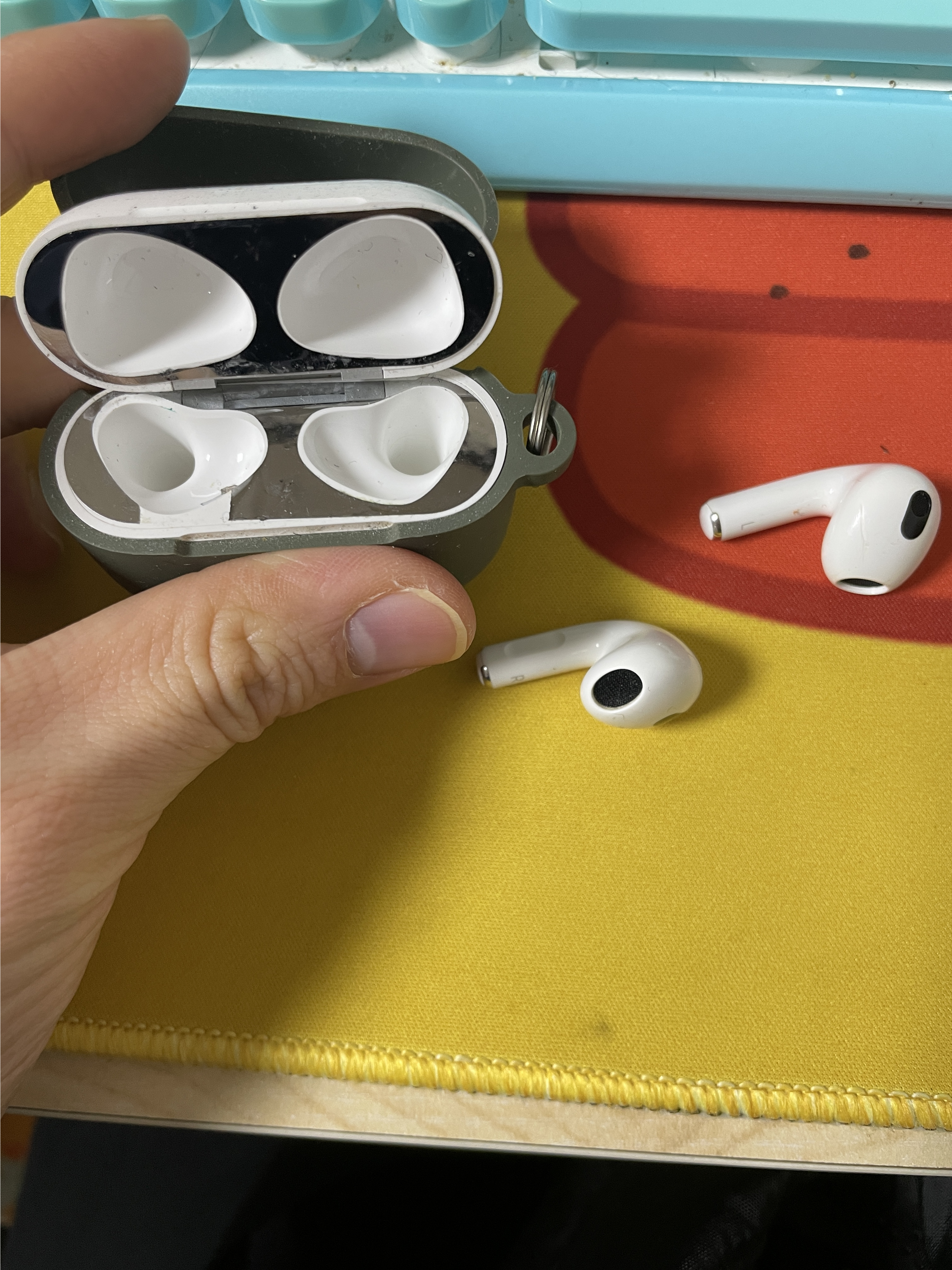 - 에어팟을 케이스에 넣고 뚜껑을 연 상태에서